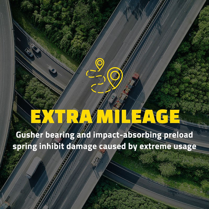 - Powdered metal gusher design allows for tighter tolerances versus traditional cover plate designs, providing a more durable and extended life part